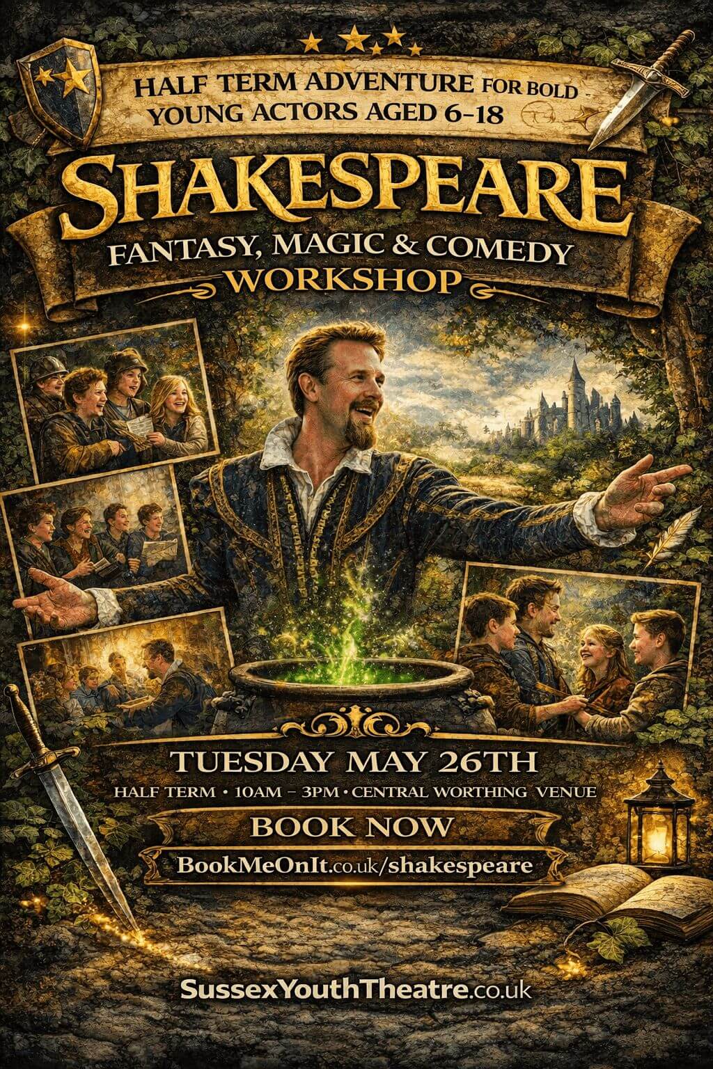 Plus get the chance in this workshop to rehearse and perform scenes that take a particular look at Daggers & Daydreams; with selected scene extracts from Macbeth, Julius Caesar and A Midsummer Night’s Dream!